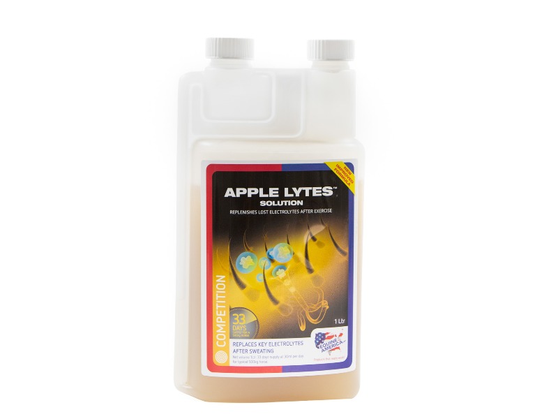 Apple Lytes Solution di Equine America è una soluzione liquida di elettroliti altamente appetibile, studiata per reintegrare rapidamente i sali minerali persi con la sudorazione e supportare l’idratazione del cavallo.